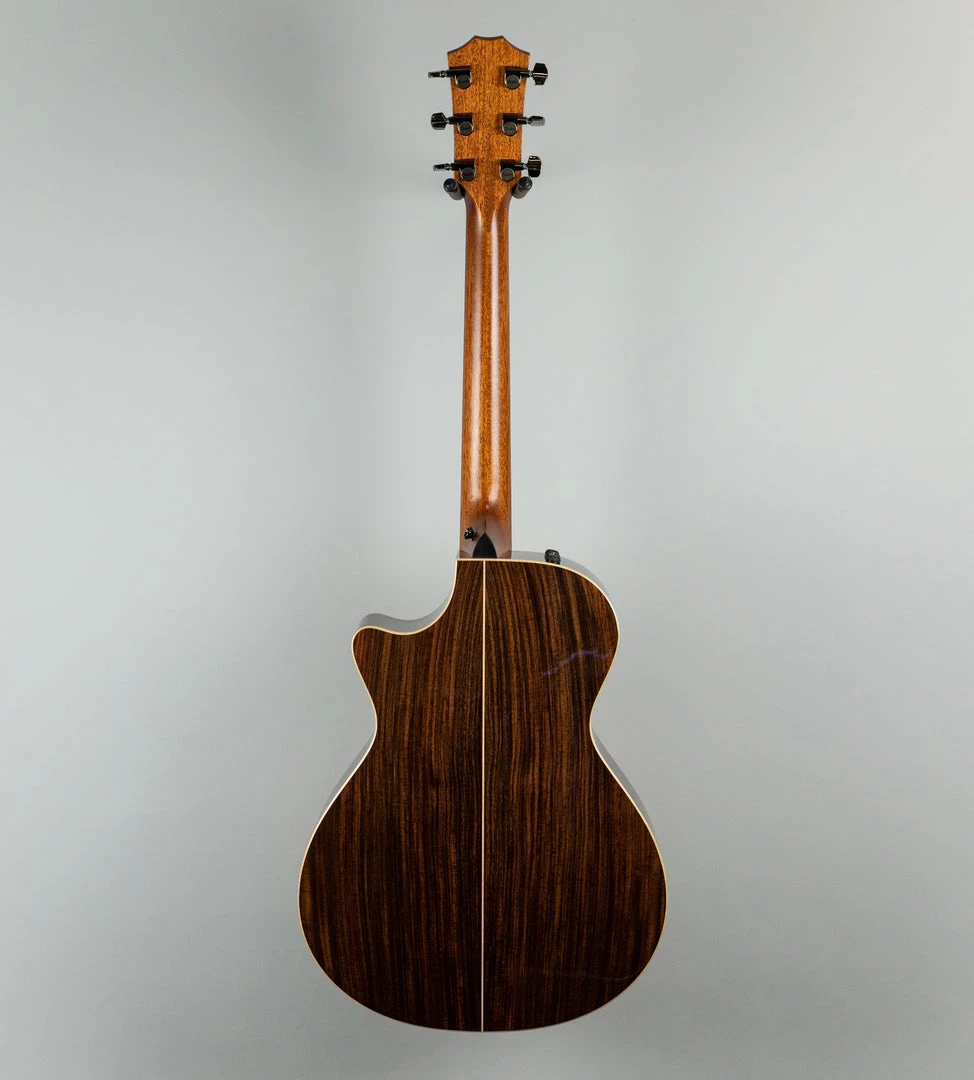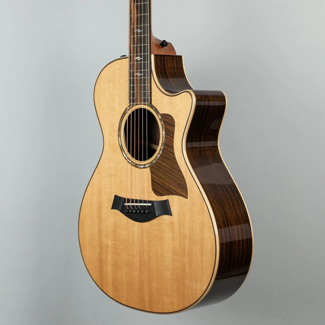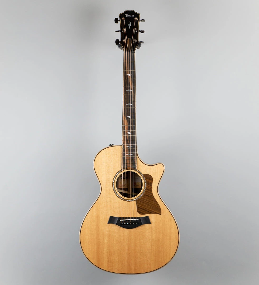 Taylor’s rosewood/spruce Grand Concert is all about articulation and intimacy. It’s a fingerstyle favorite for its balanced and focused response, now enhanced by the tone-boosting power of V-Class bracing. The revoicing of the 800 Series has brought out extra midrange warmth in this body shape, while the addition of Taylor’s new bracing design adds projection and sustain, making this a surprisingly punchy guitar for its compact, player-friendly size. A Venetian cutaway offers easy access to the upper register, while Taylor Expression System 2 electronics serve up exceptional amplified tone. Premium appointments include maple binding and back strip, rosewood top edge trim, and a rosewood pickguard.