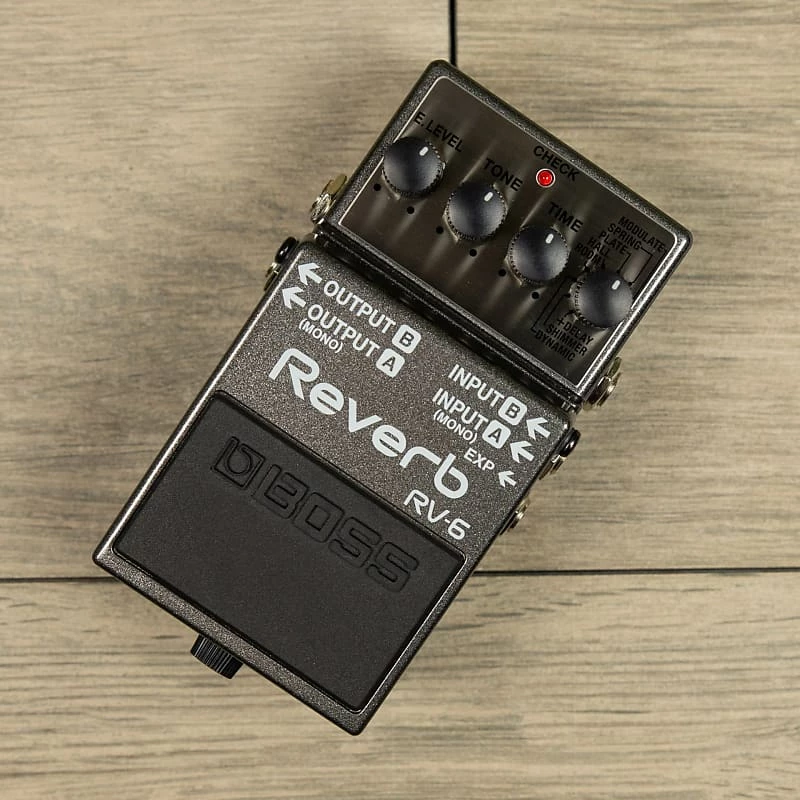 Combining high-end sound and wide-ranging versatility, the RV-6 takes pedal-based reverb to the next level. Reaching beyond the capabilities of previous generations, this powerful stomp employs the latest tech and legendary BOSS know-how to make it easy to get amazing reverb tones instantly. From subtle rooms to modern shimmer effects to long, evocative reverbs, the RV-6 envelops your tone in lush ambient spaces that endlessly inspire.