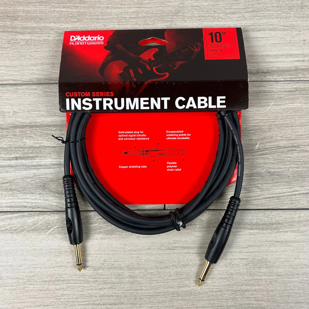 D’Addario Custom Series Cables utilize ultra-pure, Twisted pair, oxygen-free copper conductors for low capacitance and pure tone. Encapsulated and impenetrable soldering points with double-molded strain relief provide maximum durability and worry-free reliability. Two layers of shielding provide 100% coverage for superior noise rejection noise rejection and minimal handling noise, making this a superior, high-performance cable.