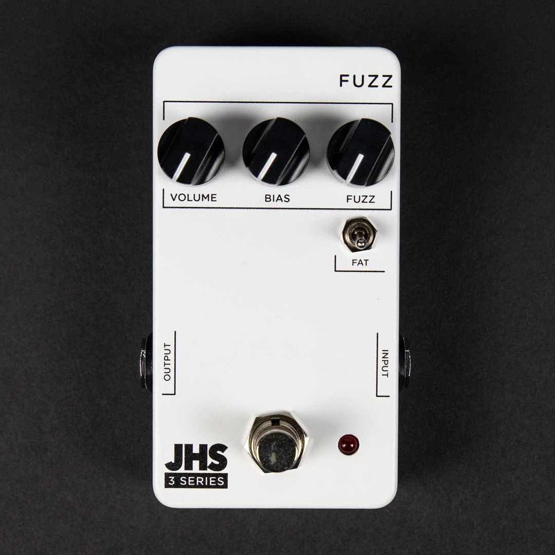The JHS Pedals 3 Series Fuzz is a versatile fuzz box that cleans up well with your guitar’s volume knob. The Fuzz is the perfect balance of vintage and modern with soaring sustain and clear articulation. The controls allow you to create a wide variety of sounds via the Bias knob, which gives the Fuzz a more gated sound as you turn it up. Unlike many fuzz pedals, the fuzz knob is usable across 100% of the sweep for many different flavors not typically found in a fuzz, like distortion, and even pushed amp Esq overdrive tones. The Fat toggle engages a bass boost for an overall fatter, more powerful sound. The JHS Pedals 3 Series Fuzz runs on 9V DC Negative Center power and consumes 9mA.