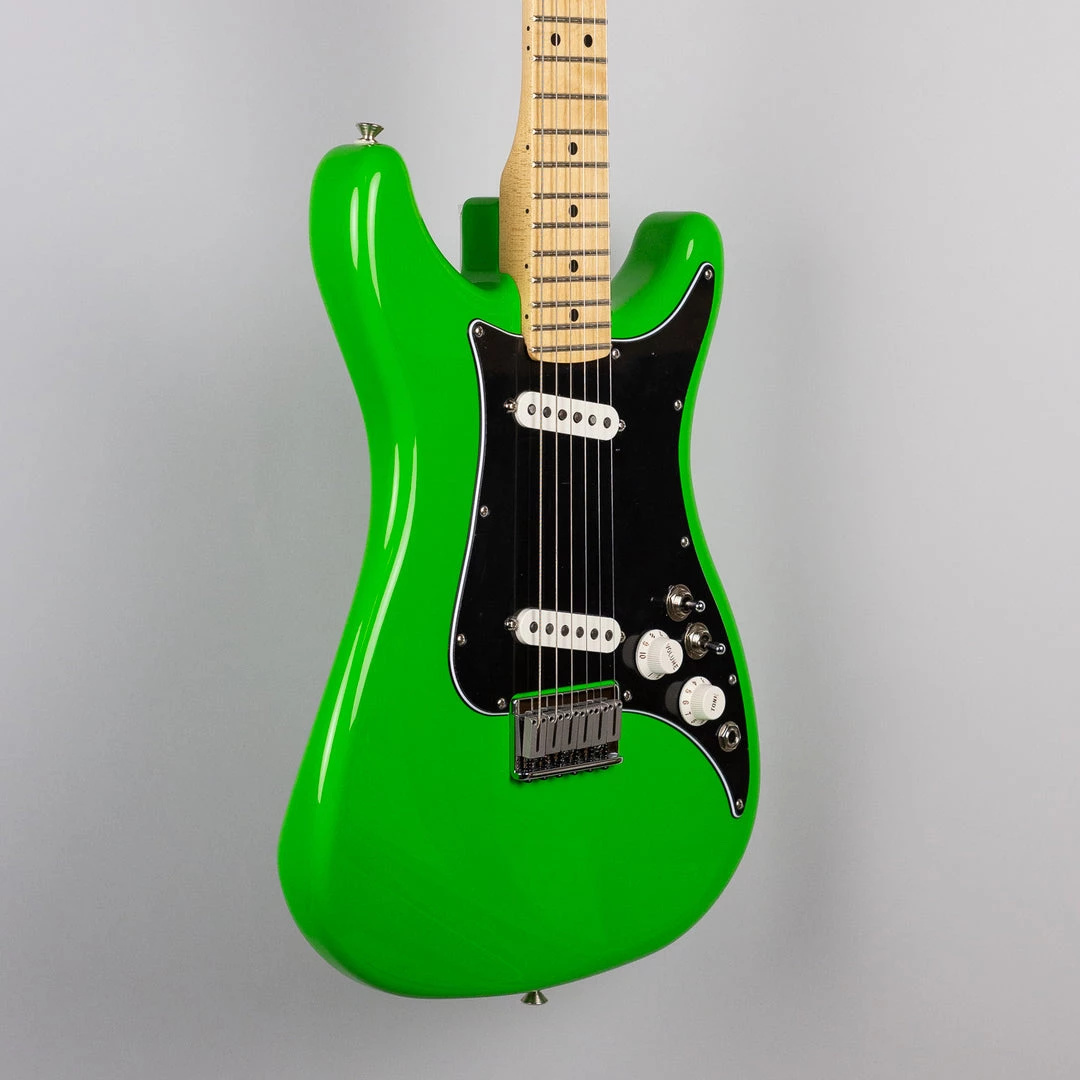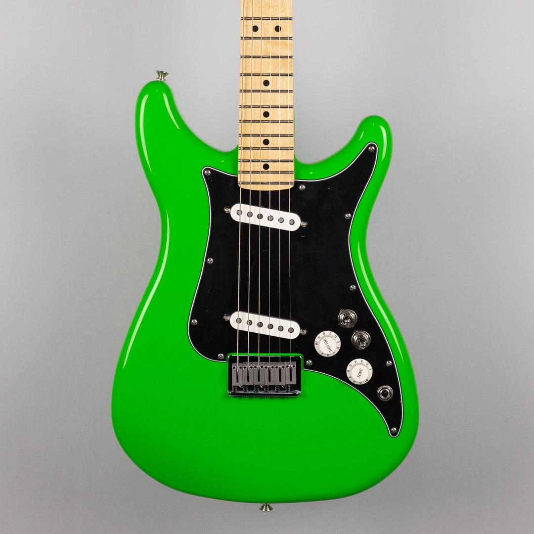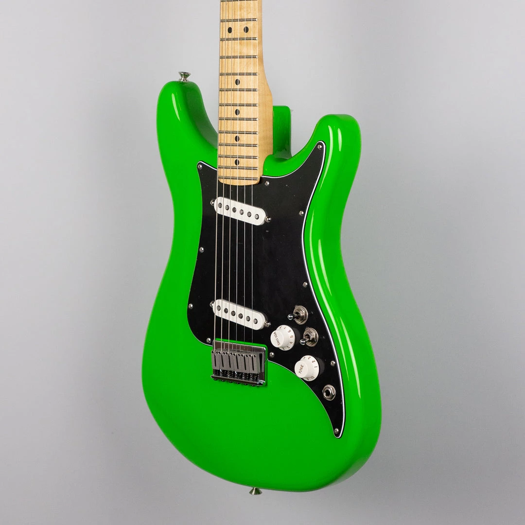 The Player Lead II is an homage to those late 70’s models, featuring dual-slanted Player series single coil pickups, a modern “C” neck shape with medium jumbo frets, dual-toggle switches (one for pickup selection, one for phase-reverse), and of course that unique Lead double-cutaway shape. Available in Neon Green, as well as vintage-correct Crimson Red Transparent and Black.