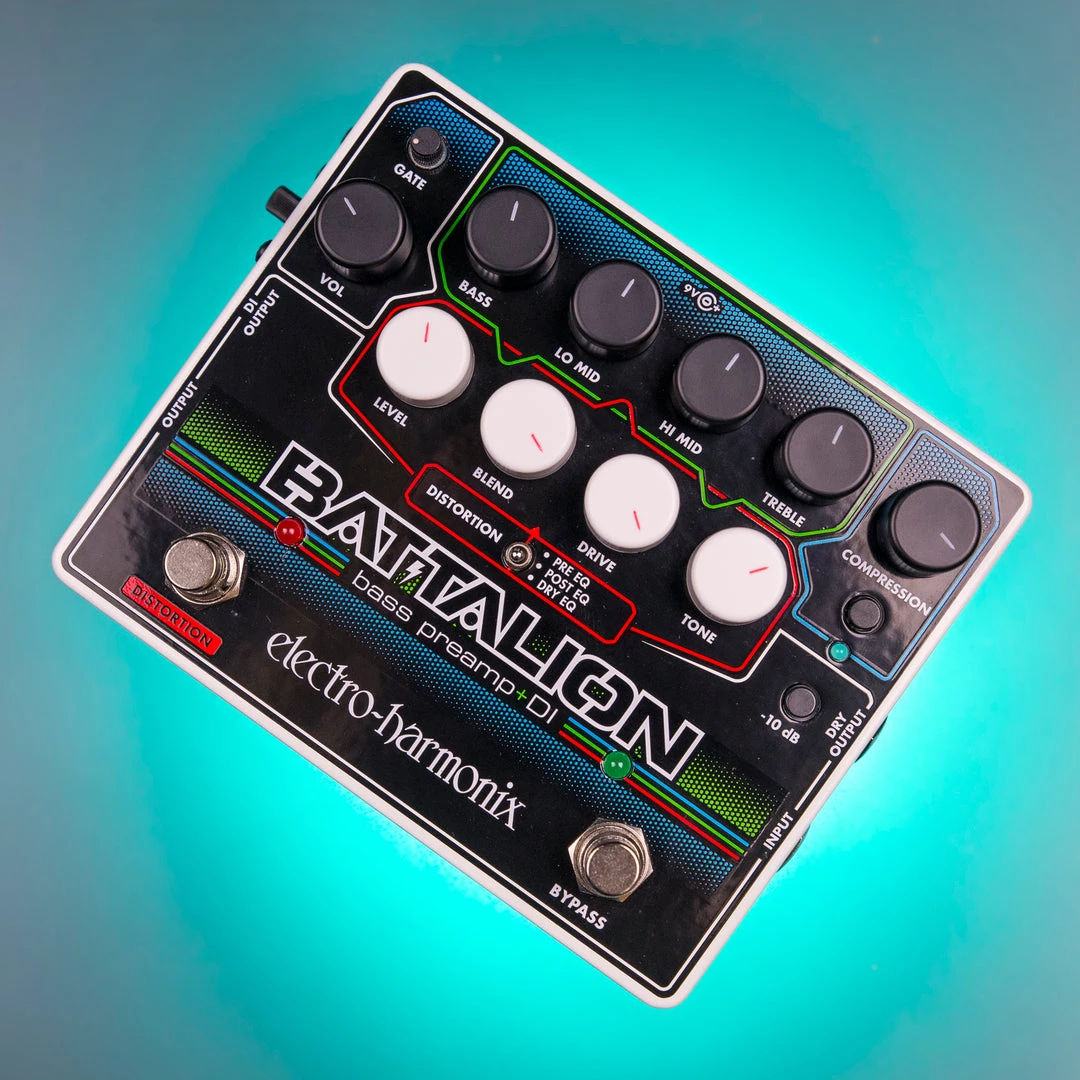 The Battalion Bass Preamp and DI is a compact, flexible pedal that delivers powerful tone shaping capabilities in a rugged pedalboard-friendly package. The Battalion is loaded with features that will appeal to tone conscious bass players and includes a four-band equalizer, fully-featured MOSFET distortion section with three signal path options, a compressor, a noise gate and comprehensive I/O.