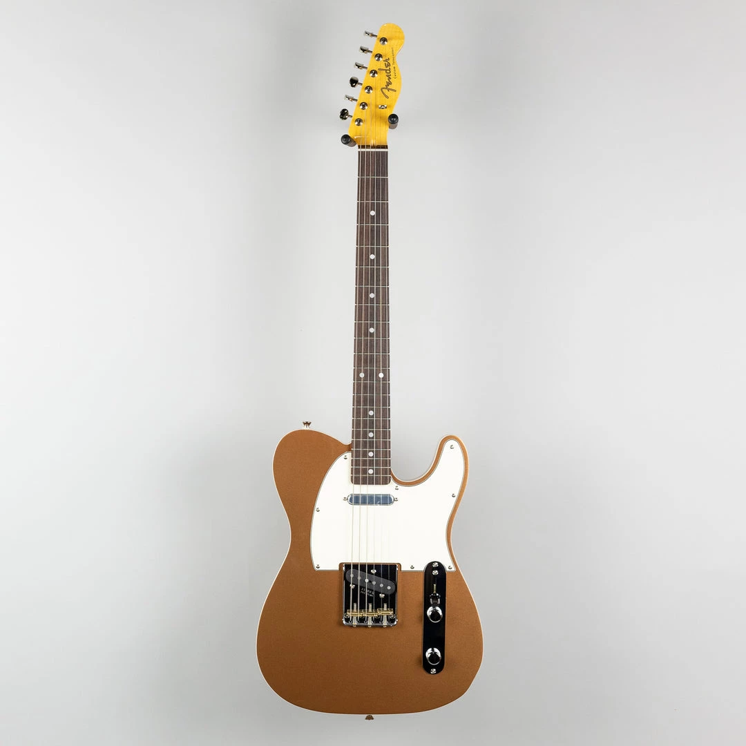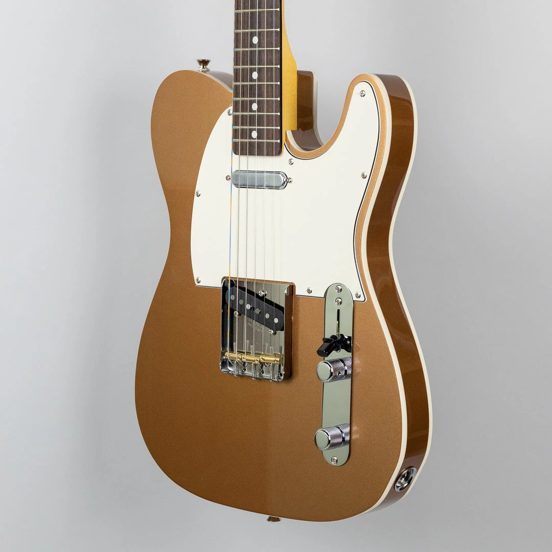 The ’60s Custom Telecaster has a resonant basswood body and is double bound for a touch of elegance. Its dual single-coil pickups are voiced to deliver classic Tele tone. A 4-way switch allows players to quickly select each pickup individually or both pickups in either series or parallel wiring. A push-pull pot on the tone control allows players to flip the pickups in and out of phase in switch positions 2 and 4. The Soft “V”-shaped maple neck has a silky-smooth satin finish and plays effortlessly thanks to the 9.5″ radius rosewood fingerboard and medium jumbo frets.