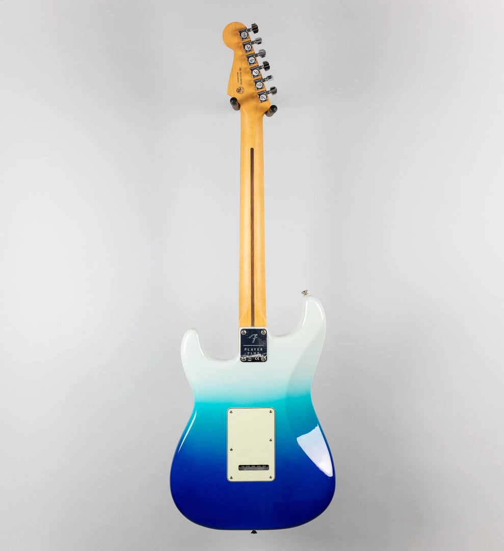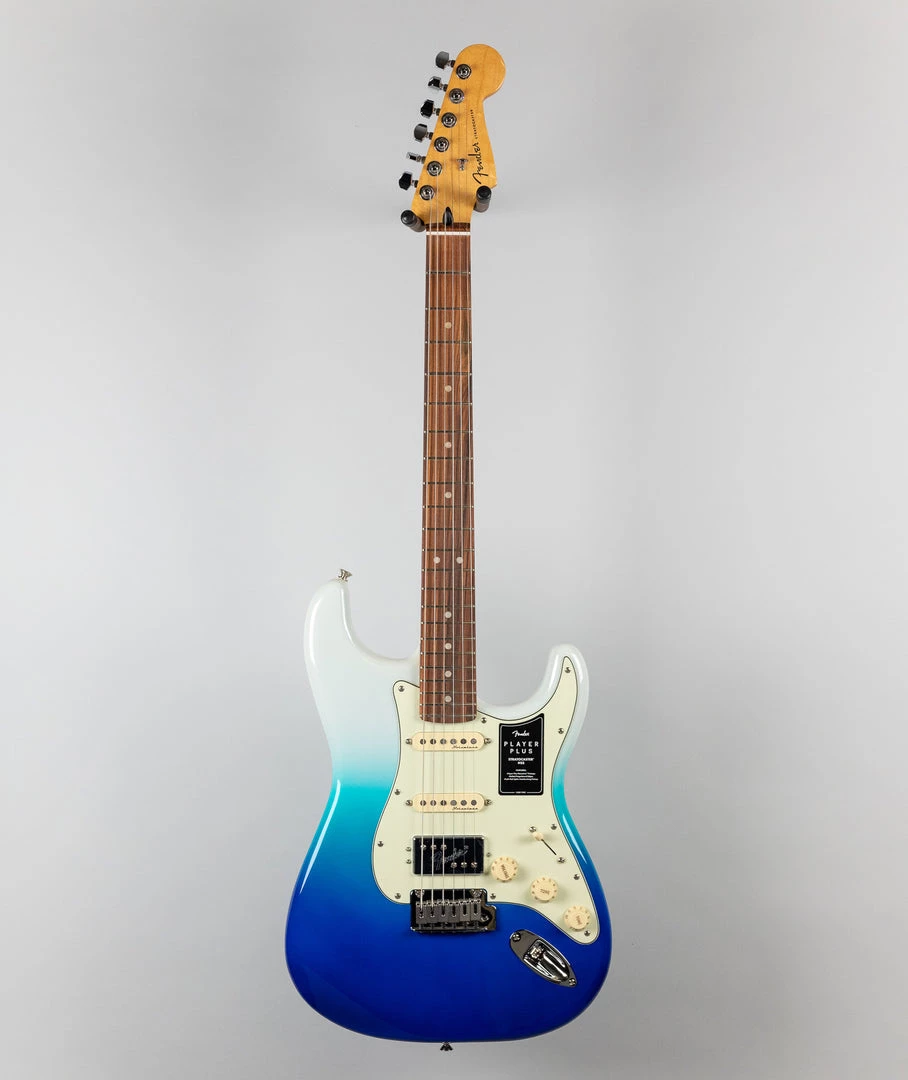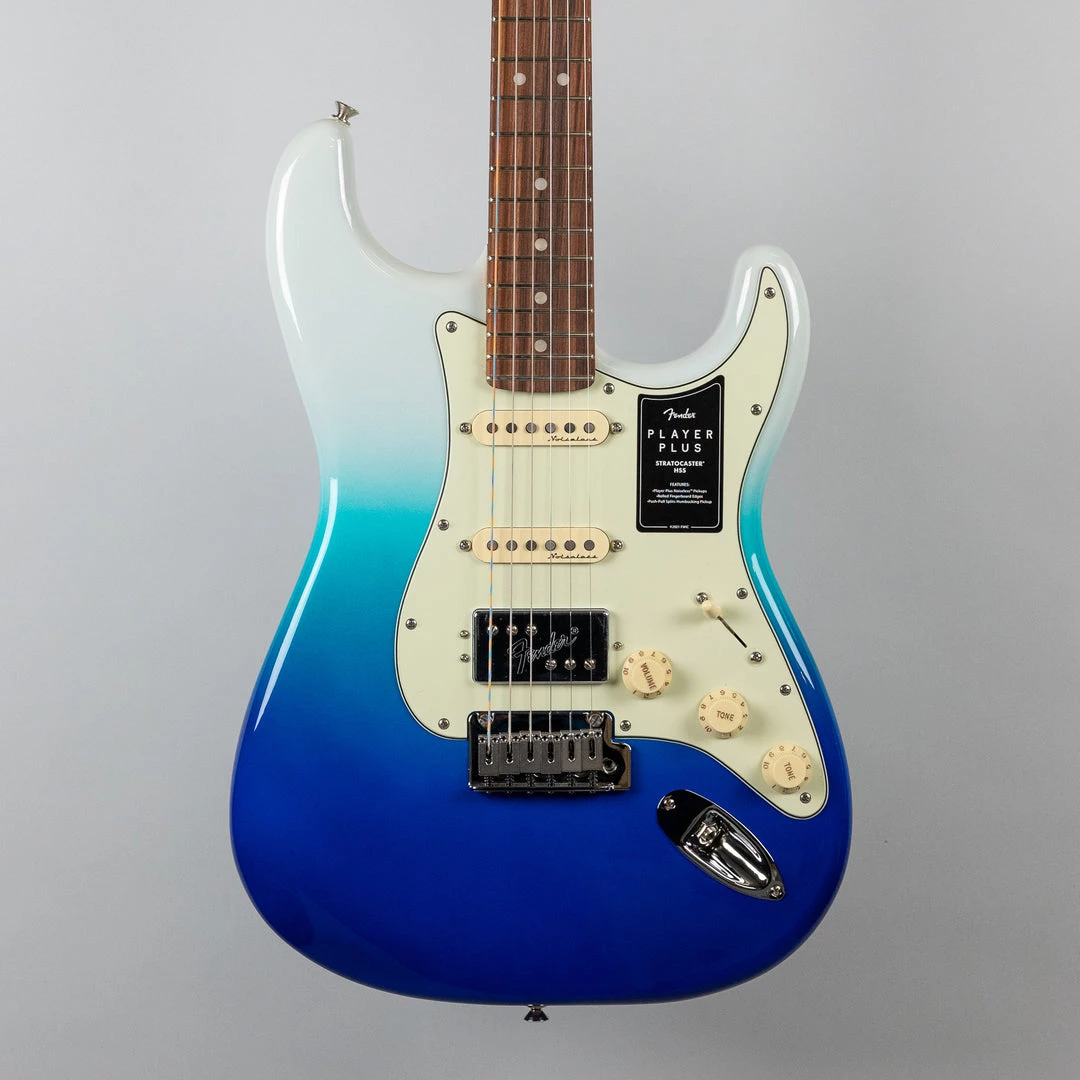 Fusing classic Fender design with player-centric features and exciting new finishes, the Player Plus Stratocaster HSS delivers superb playability and unmistakable style. The powerful Player Plus humbucking pickup delivers the perfect balance of gain and definition, while the Player Plus Noiseless Strat pickups are bright and touch sensitive, offering classic Strat tone without hum. A push-pull tone controls activate coil-split mode for the humbucking pickup, delivering crystal-clear single-coil tones. The silky satin Modern “C” Player Plus Strat® neck fits your hand like a glove, with smooth rolled edges for supreme comfort. The 12” radius fingerboard and 22 medium jumbo frets facilitate fluid leads and choke free bends. Smooth and responsive, the 2-point tremolo provides classic vibrato effects, while the locking tuners provide rock-solid tuning and make string changes quick and easy. With classic Fender style, advanced features and stunning new finishes, the Player Plus Stratocaster HSS is the perfect tool to spark your creativity and stand out from the crowd.
