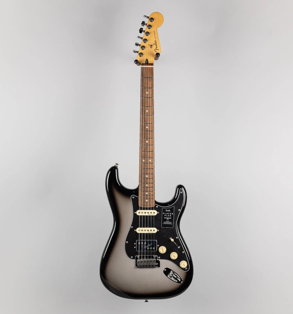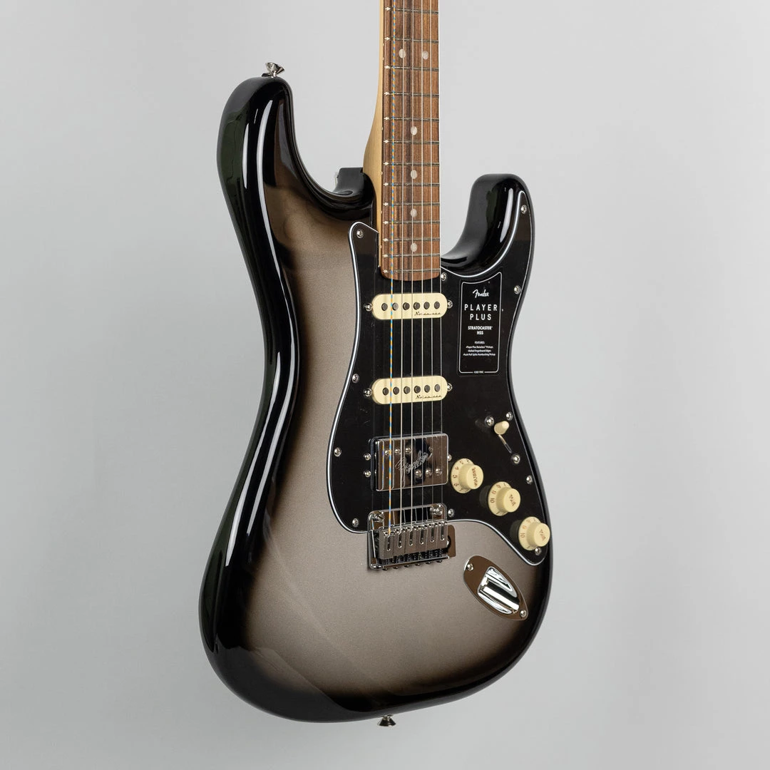 Fusing classic Fender design with player-centric features and exciting new finishes, the Player Plus Stratocaster HSS delivers superb playability and unmistakable style. The powerful Player Plus humbucking pickup delivers the perfect balance of gain and definition, while the Player Plus Noiseless Strat pickups are bright and touch sensitive, offering classic Strat tone without hum. A push-pull tone controls activate coil-split mode for the humbucking pickup, delivering crystal-clear single-coil tones. The silky satin Modern “C” Player Plus Strat neck fits your hand like a glove, with smooth rolled edges for supreme comfort. The 12” radius fingerboard and 22 medium jumbo frets facilitate fluid leads and choke free bends. Smooth and responsive, the 2-point tremolo provides classic vibrato effects, while the locking tuners provide rock-solid tuning and make string changes quick and easy. With classic Fender style, advanced features and stunning new finishes, the Player Plus Stratocaster HSS is the perfect tool to spark your creativity and stand out from the crowd.