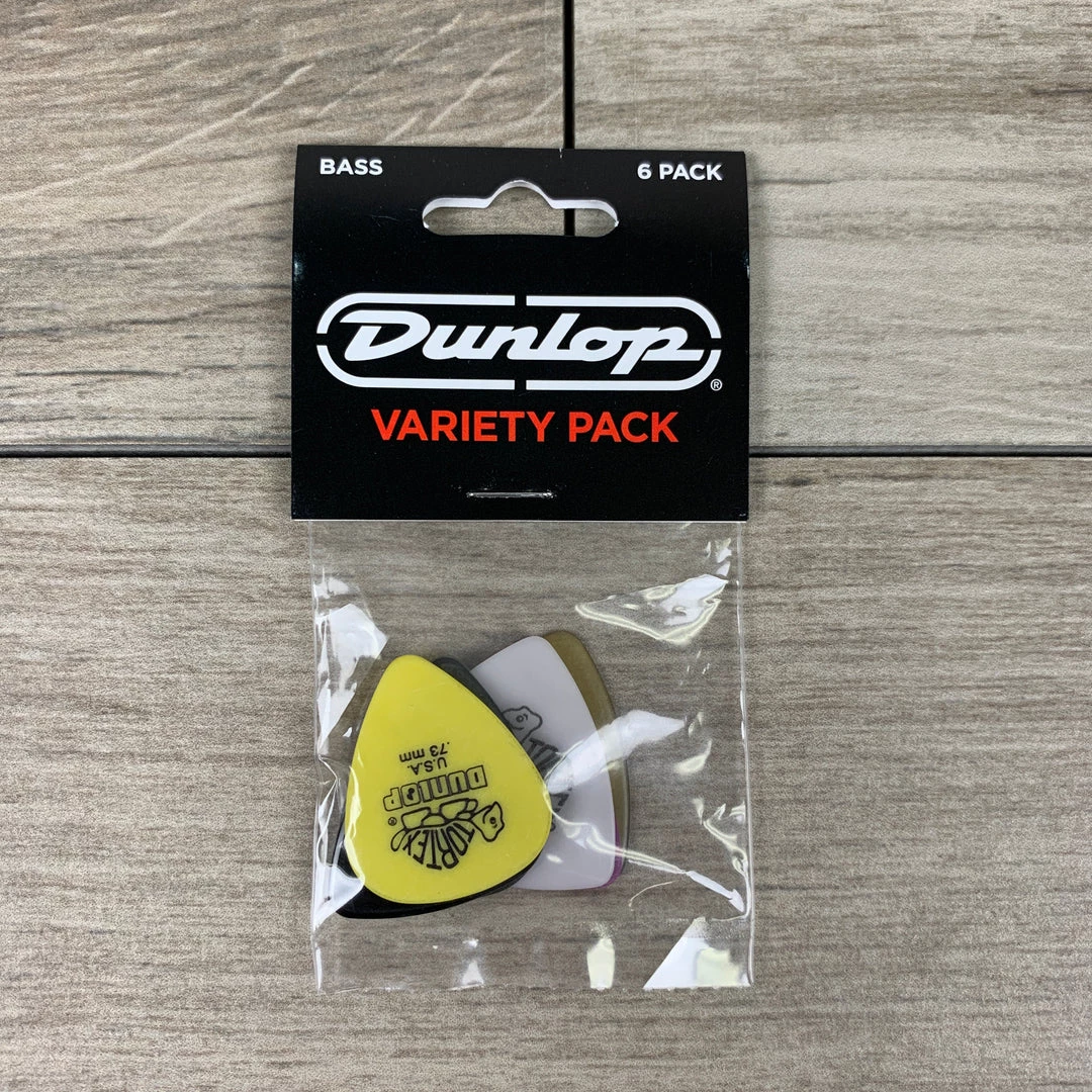 Bass Pick Variety Pack Contains: Ultex Tri 1.14mm, Delrin Prime Grip .96mm, Tortex Flex Tri 1.0mm, Tortex Standard .73mm , Tortex Tri 1.14mm, and Max-Grip 1.0mm.