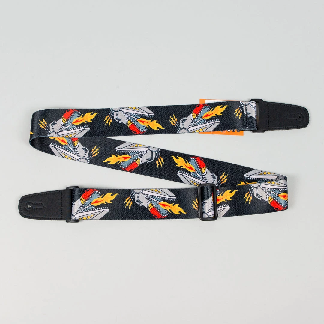 Henry Heller 2″ wide Mechanical T-Rex flame blowing gamer guitar strap, extends extra long to 62″ and has vegan micro fiber double reinforced ends.