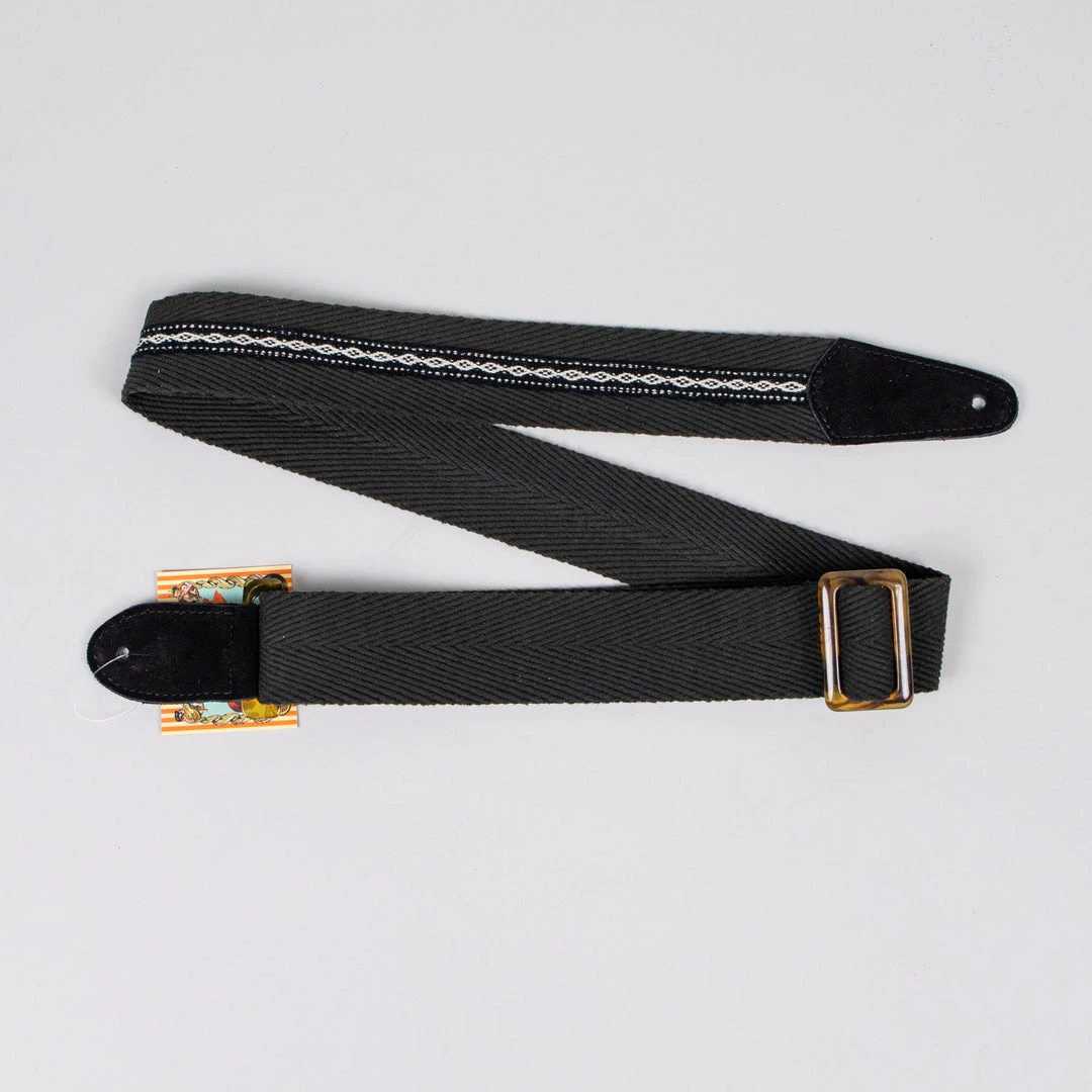 Fretted Accessories Henry Heller 2″ Tort-O Herringbone Black Cotton With White Guitar Strap