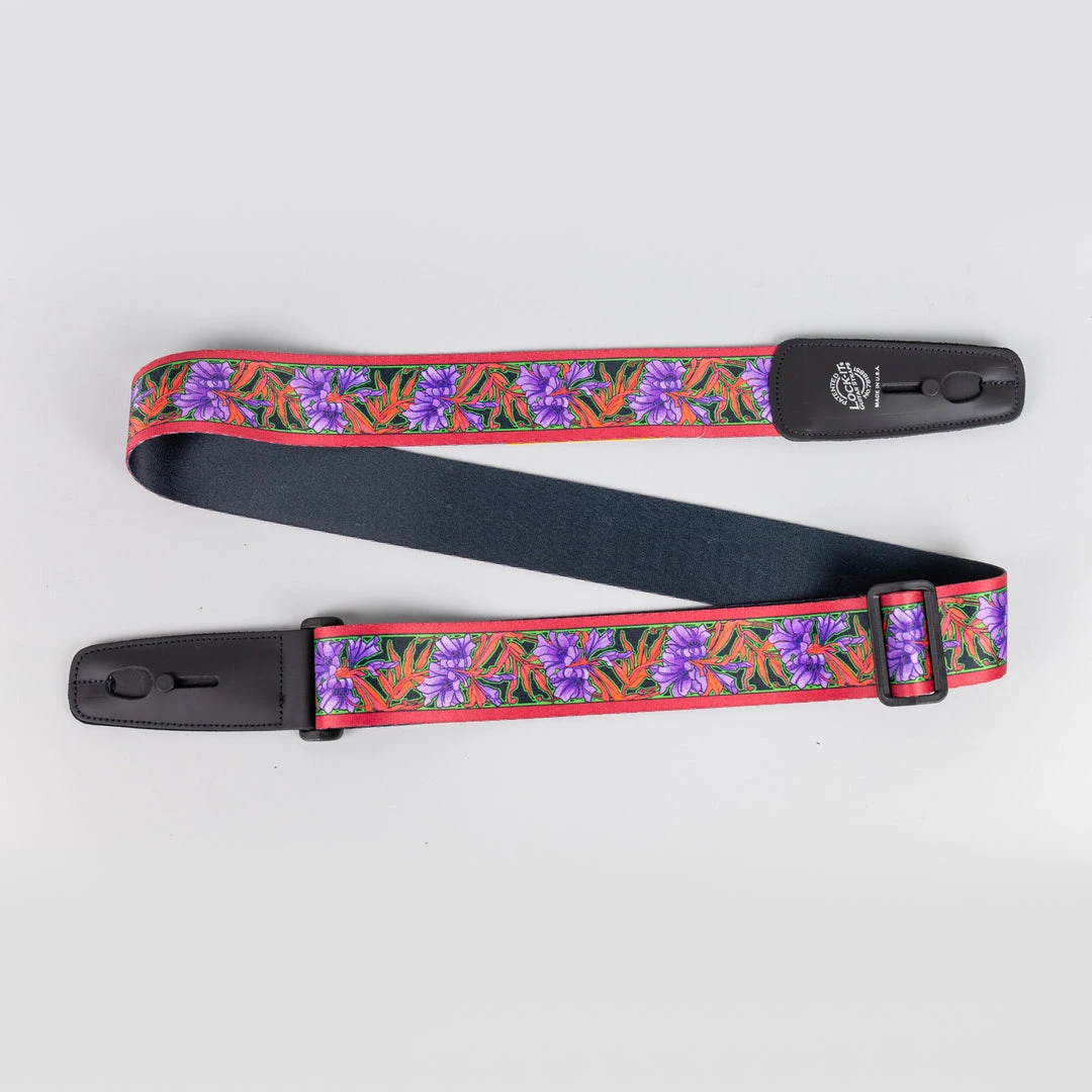 Fretted Accessories Lock-It Bob Masse Series 2″ Soft Plush Poly Guitar Strap, Purple Flowers