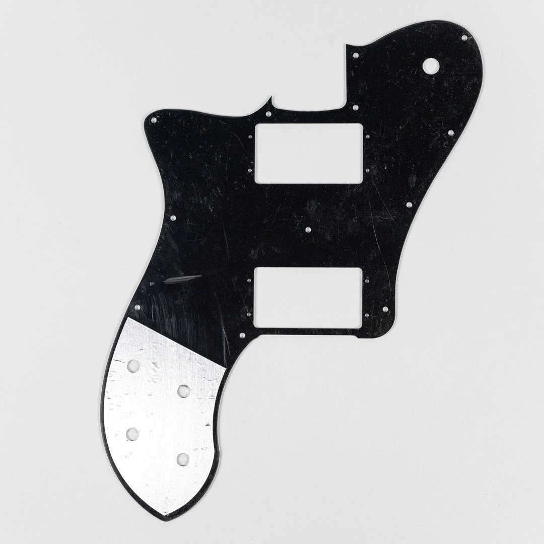 This three-ply black pickguard fits the Mexico-made ’72 Telecaster Deluxe. The pickguard has a plastic film cover which can be seen in the actual photos. Mounting hardware not included.