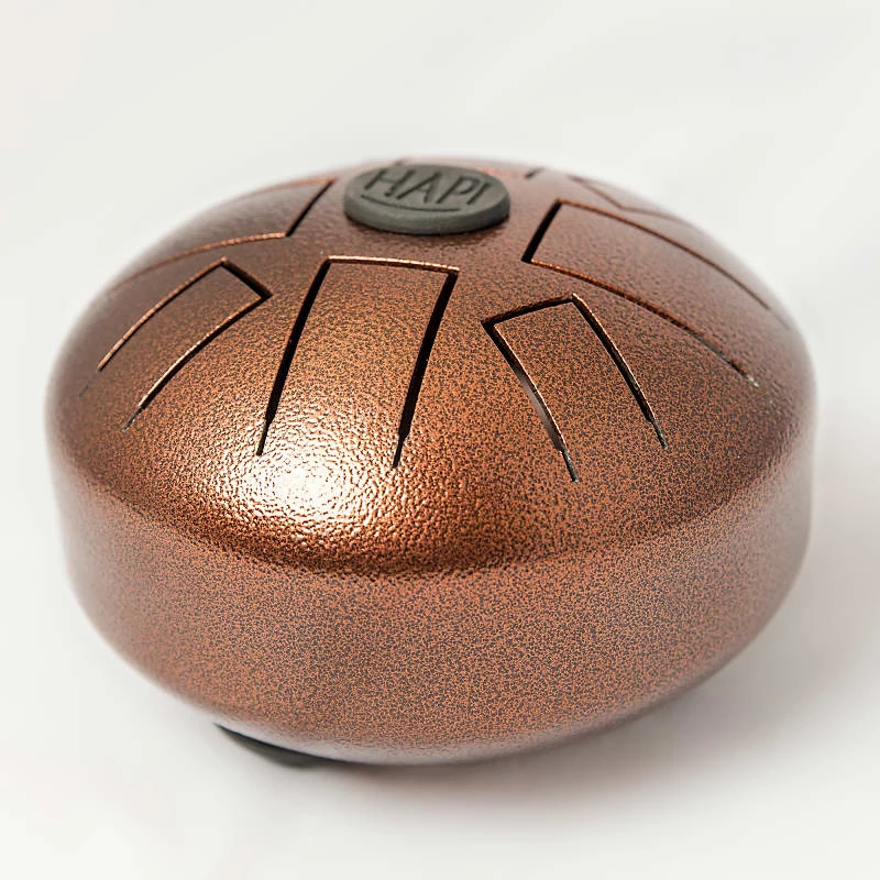 The HAPI Drum Mini is HAPI’s smallest and most compact drum. These little ones have a big sound at a small price! It’s so easy to bring along your HAPI Drum Mini anywhere you go. Play it in the park, bring it over to a friends house, or take it camping. Fits in day packs for easy travel and even has its own optional padded bag for transport and storage. This HAPI Drum uses the same Patented (D620,041S) eight note layout as the other HAPI Drums which adds harmonic tones to each note when played. A bottom port helps let the sound out to fill the room and rubber feet allow it to be set on any surface for play.