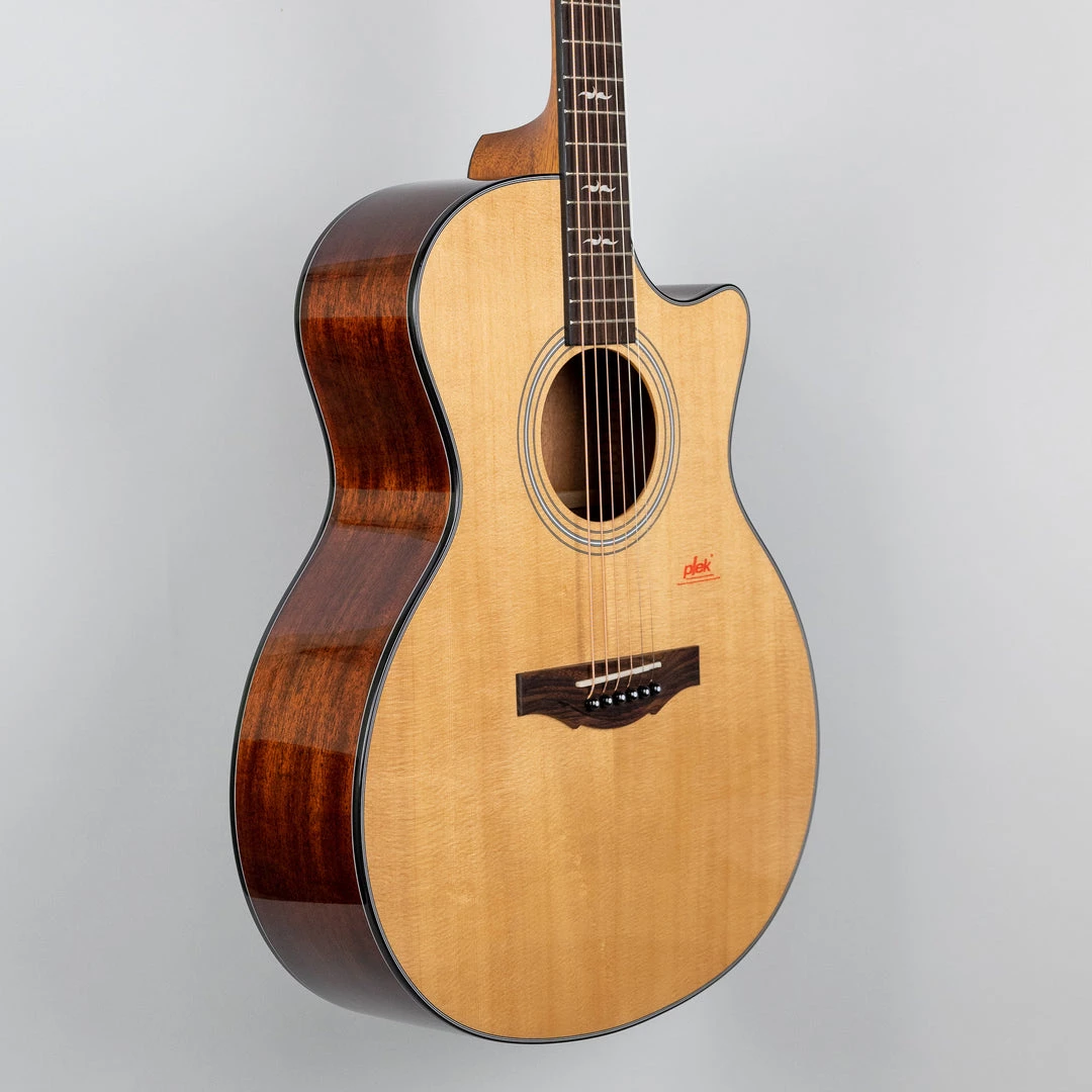 The GA2-131 is a grand auditorium body shape cutaway guitar that features a AA+ solid Alaskan spruce top paired with African mahogany back & sides. It provides you with an amazing level of playability with an “electric-like” action, perfect neck setup with the Plek system, impeccable high-precision build and simply amazing sound.