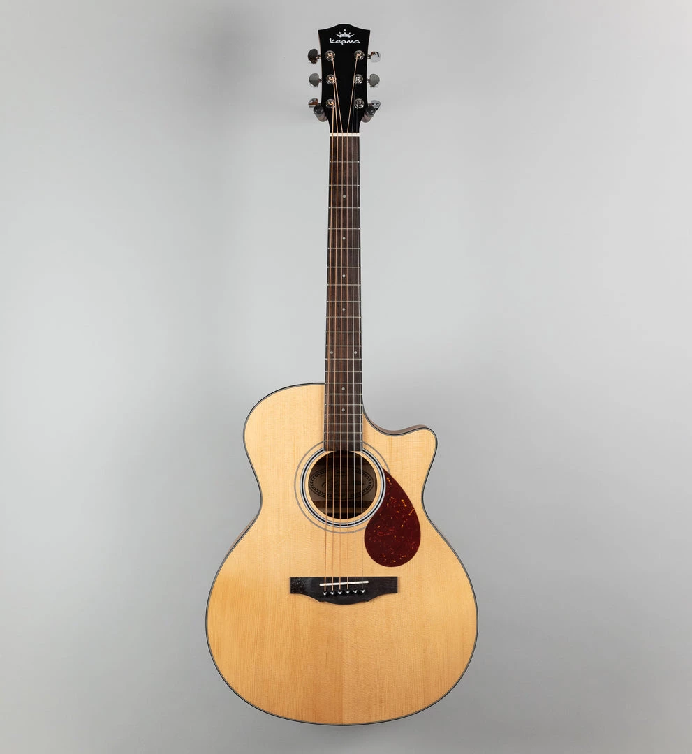 The GA2-232 is a grand auditorium body shape cutaway guitar that features a solid Alaskan spruce top paired with Indian mahogany back & sides. This is the entry into the Kepma Elite Series and offers amazing tone and playability at a more affordable price.