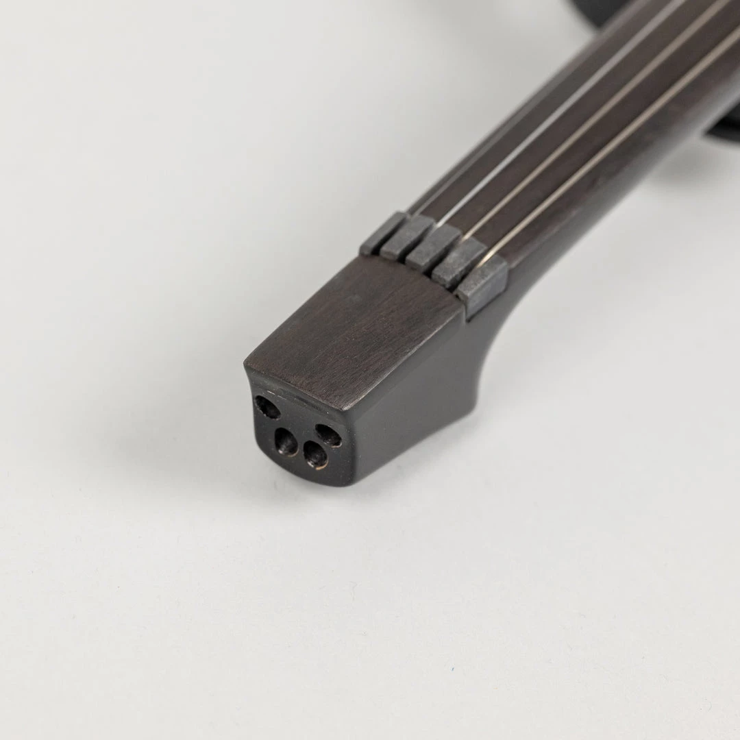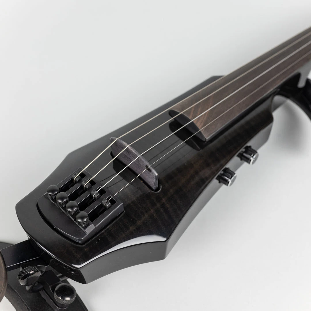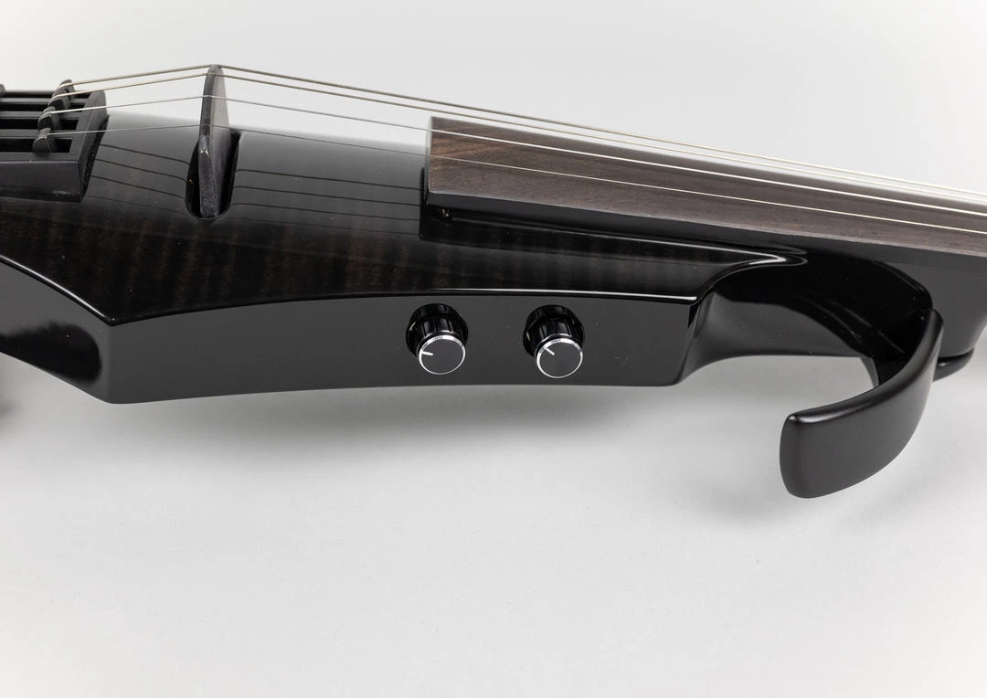 The reserve power of a well set up electric violin makes the instrument easier to play than a conventional acoustic. The NS WAV Electric Violin’s rock maple bridge is easily adjustable for the playing style and action height you prefer; high and powerful like a traditional violin, low and fast like an electric guitar, or anywhere in between. The ebony fingerboard is graduated for each string to optimize the tone and playability of every note. The neck is smooth and fast, with traditional thumb reference points for the scroll and heel. The removable bout provides accurate position reference for players accustomed to using the traditional body shape for reference.