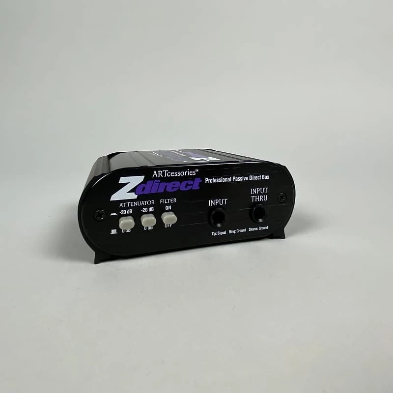 What further sets the Zdirect apart from other “DI” boxes are its extended features and versatility. We have added a switchable low pass Filter that cuts out all very high frequency interference. This Bessel filter on the output is placed out of the audio range and is primarily intended to reduce radio frequency interference before it gets into the main system. The filter is also very effective in reducing any digital computer noise artifacts when using the Zdirect as an interface between a computer based audio workstation and your monitors. The Phase Invert switch, while not normally included with your run of the mill D.I. box, has been added to allow you to switch signal polarity right at the source. This feature is especially handy when you are combining a direct tap with a microphone feed in the mix.