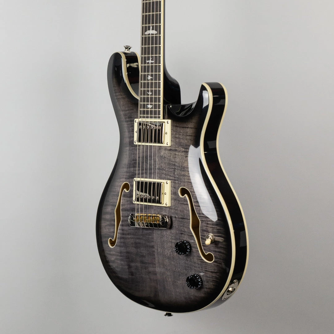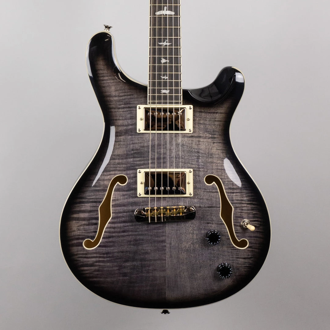 The SE Hollowbody II combines the power and stability of a solid-body electric guitar with the captivating resonance of a hollowbody instrument. The 58/15 “S” pickups deliver clarity and balance that sound big and musical in the hollowbody platform. Designed to look as good as it sounds, the SE Hollowbody II also features a figured maple top and back and mahogany sides as well as a mahogany neck (set-neck construction) with PRS trademark bird inlays. Both hollowbody and solidbody players will feel at home with the SE Hollowbody II.