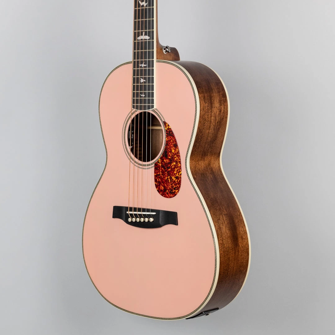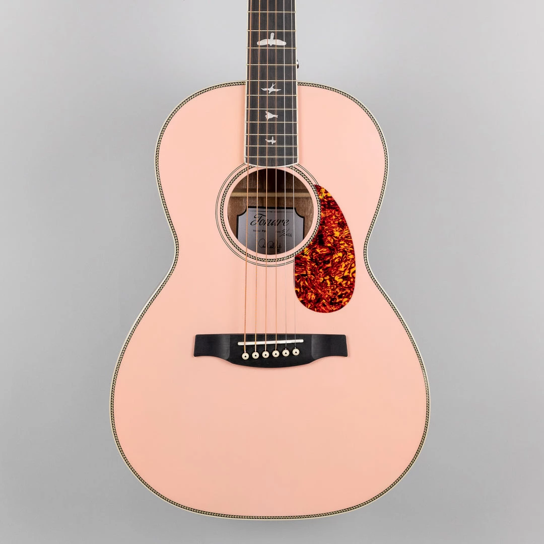 The PRS SE P20E is an all-mahogany, parlor-sized acoustic with a big voice. Featuring PRS hybrid “X”/Classical bracing, which allows the top to freely vibrate, the SE P20E projects with even, bold tone. This limited edition PRS SE parlor acoustic adds an Antique White finish to the model’s solid-mahogany top.