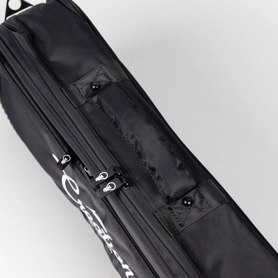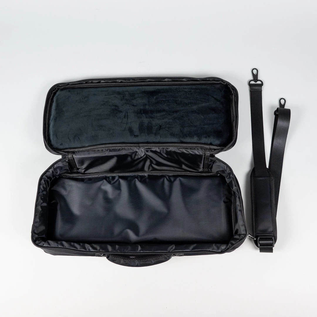 When designing the Pro Series Soft Cases, Creation Music cleared the drawing board and started from scratch. They wanted to improve every aspect of their soft cases. They started with a thicker, smoother and more durable Nylon outer, and then nearly tripled the padding to 15mm. They also added a beaded edge with reinforced corners and rubber feet on the bottom. The use of a water resistant zipper helps keep rain out, plus these bags include a full-length seatbelt-style strap with a shoulder pad for added carrying comfort. The handle and strap rings are riveted on for extra strength. The outer pocket also has a thin layer of padding so your accessories have extra protection. Inside, the bag lid features a soft velvet lining that rests against your pedals. Improved aesthetics include an embroidered logo and lightbulb branded rubber zipper toggles.