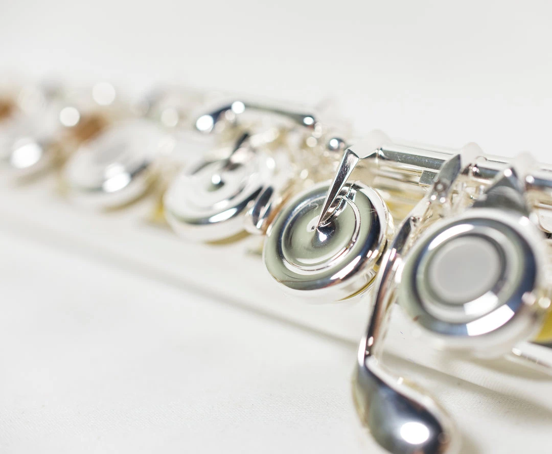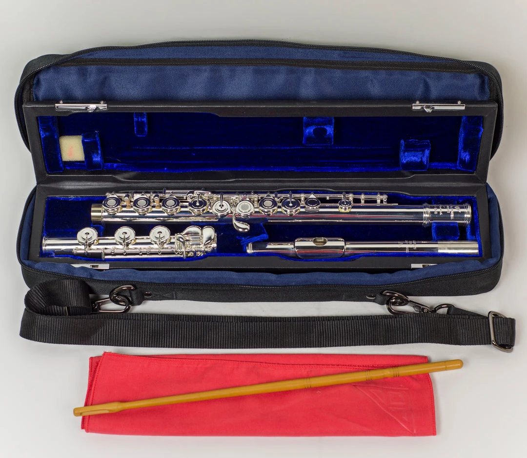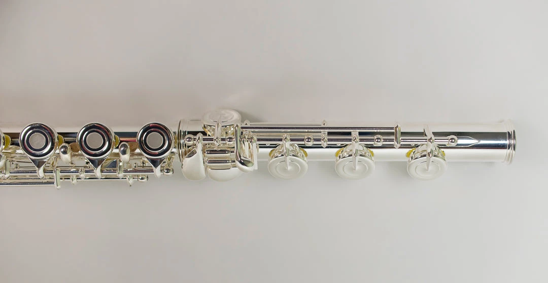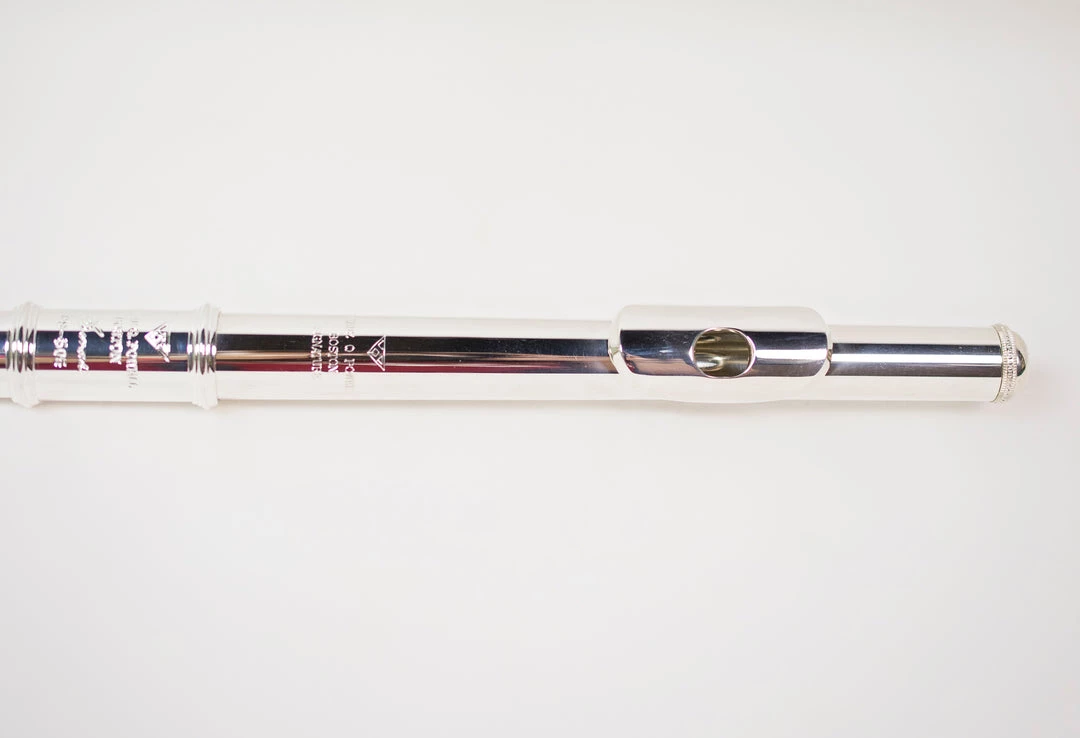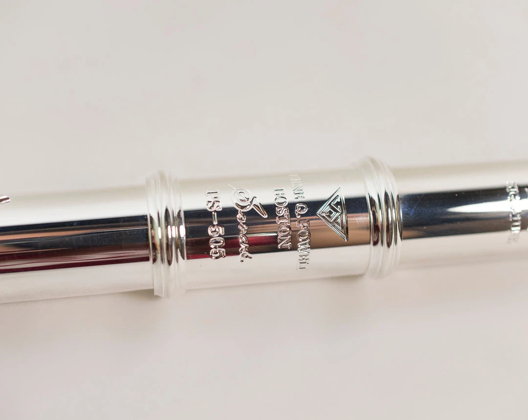 Silver plated nickel-silver instrument body with a Powell Signature Sterling Silver headjoint which are handmade by Powell in Massachusetts, USA and includes elegant pointed arms.