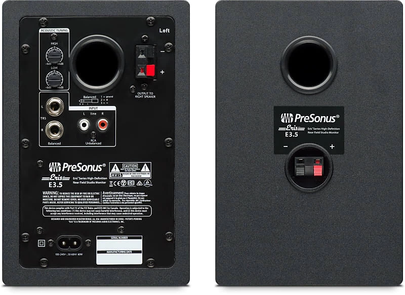 Like all PreSonus monitor speakers, the Eris E3.5 offers consistent, accurate listening, with the smooth and even frequency response that has made Eris monitors popular around the world. Their compact and powerful design makes them an ideal solution for any small space.