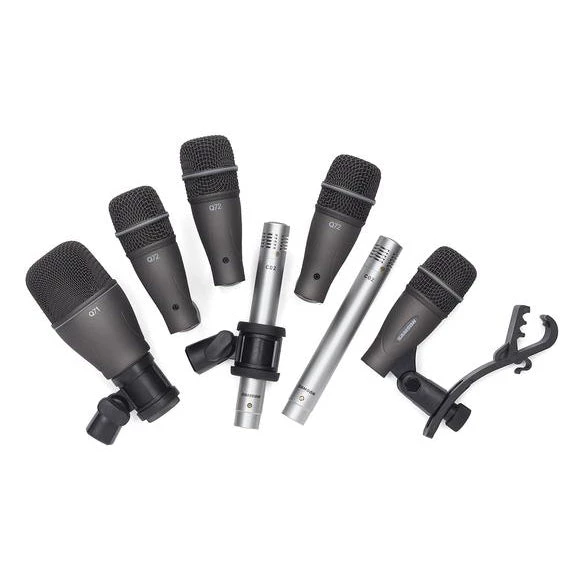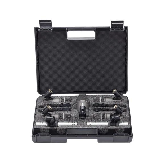 The DK707 is a full-range microphone package for professional drummers. It includes one Q71 Kick Drum Microphone, four Q72 Instrument Microphones and two C02 Pencil Condenser Microphones. Featuring high SPL handling, the Q71 is optimized to capture the full essence of your bass drum. With a specialized frequency response, the Q72s help reproduce the natural tone and attack of your snare drums and toms. Lastly, the C02s are perfect for overhead and ambient miking applications.