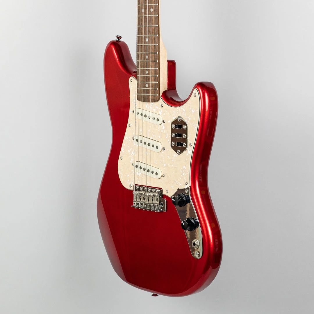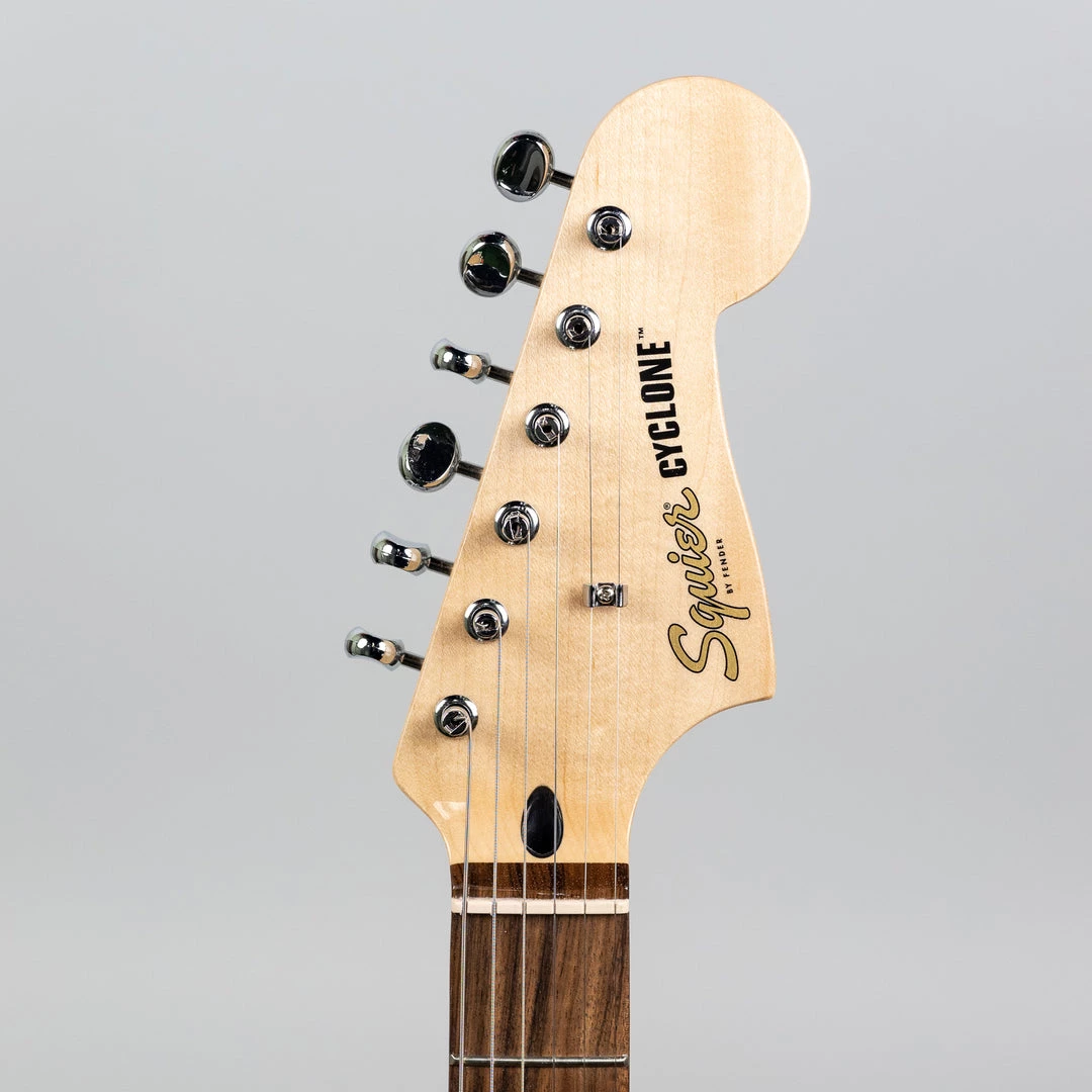 The Paranormal Cyclone combines details from several iconic Fender models to create a whirlwind that is greater than the sum of its parts. With a small offset body shape borrowed from the Mustang, pickups and vintage-style tremolo from a Stratocaster, and controls from a Jaguar, this guitar delivers standout style and versatile tone perfect for any musical genre. Further player-friendly callouts include a 24.75” scale length and slim “C”-shape neck profile for easy playability and a gloss neck finish for a slick feel.