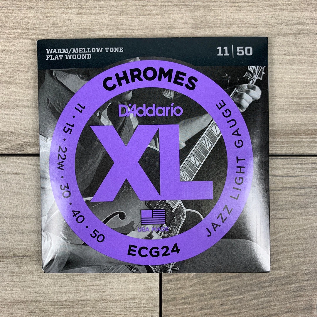 D’Addario XL Chromes are the industry standard in flatwound guitar strings. They deliver a round, full low end without losing punch, making them ideal for jazz players of all types. Wound with flattened stainless steel ribbon wire, XL Chromes are then polished to unparalleled smoothness.