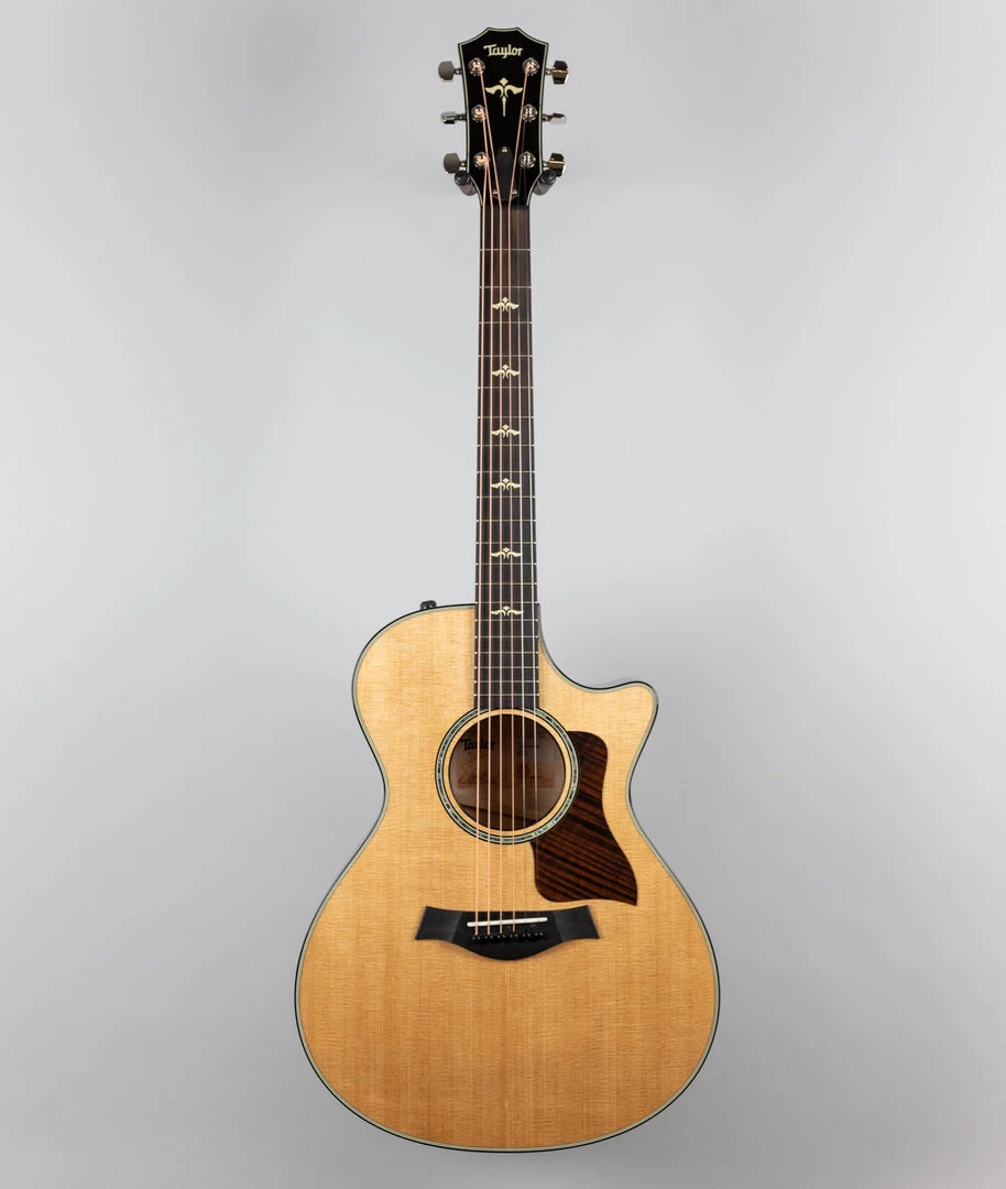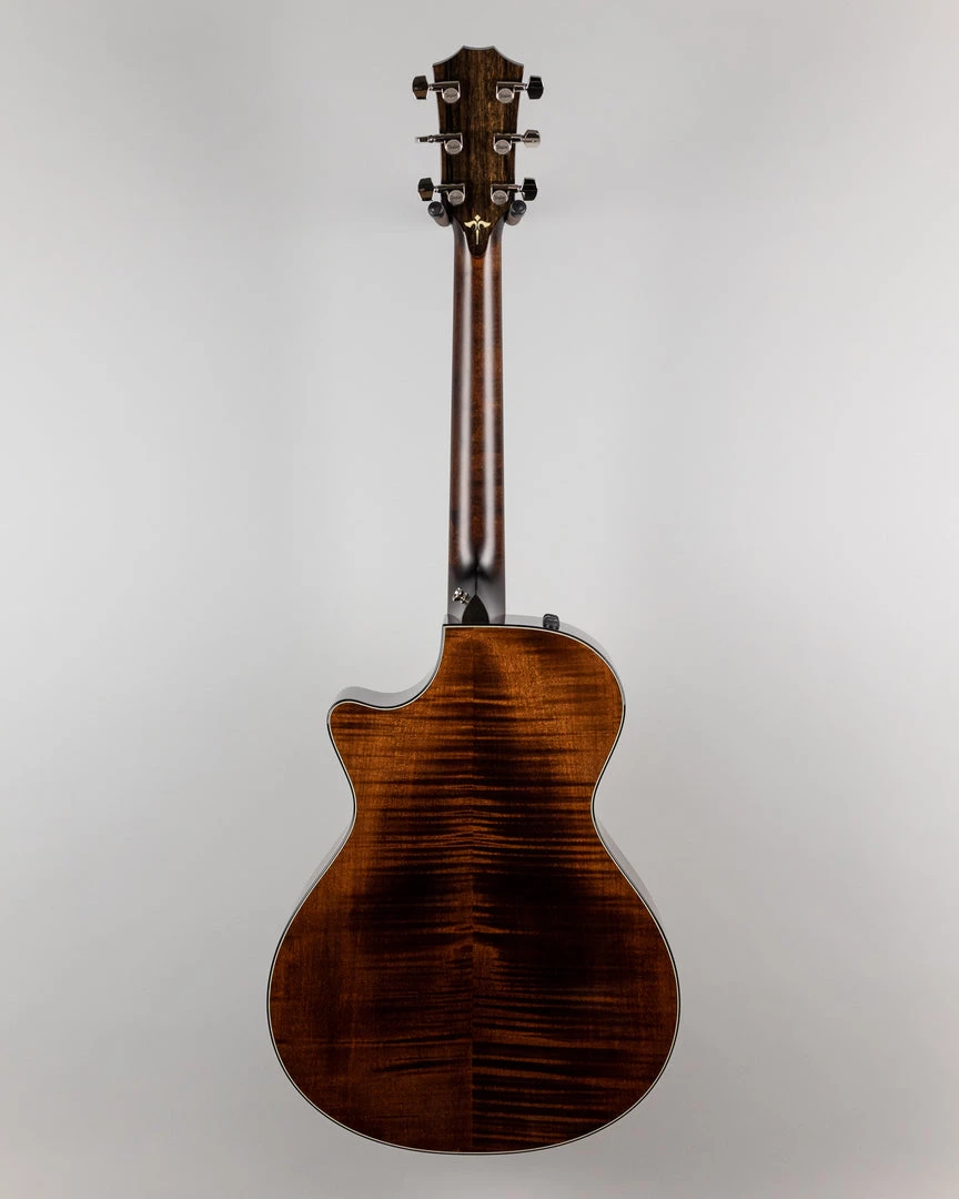Rich, warm and complex, the new bracing adds extra depth to the Grand Concert body’s natural clarity and top-end chime. Tone-enhancing strokes include a torrefied (specially roasted) top that yields wonderfully aged tonal character and an ultra-thin, 3.5-mil gloss finish to enhance the guitar’s acoustic resonance. Together with a hand-friendly short-scale neck, the 612ce sounds and plays like a dream. A hand-rubbed “Brown Sugar” stain on the back and sides gives maple’s striking figure a beautiful violin-hued appearance. Featured appointments include new grained ivoroid Wings fretboard inlays, an inlaid ebony backstrap, ebony binding with grained ivoroid purfling, an ebony/grained ivoroid rosette, and a striped ebony pickguard, with Taylor’s stage-ready Expression System 2 pickup onboard.