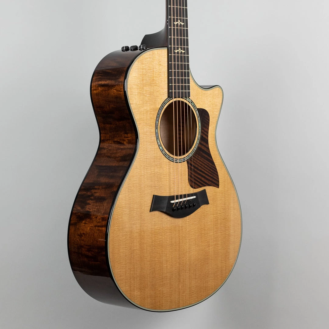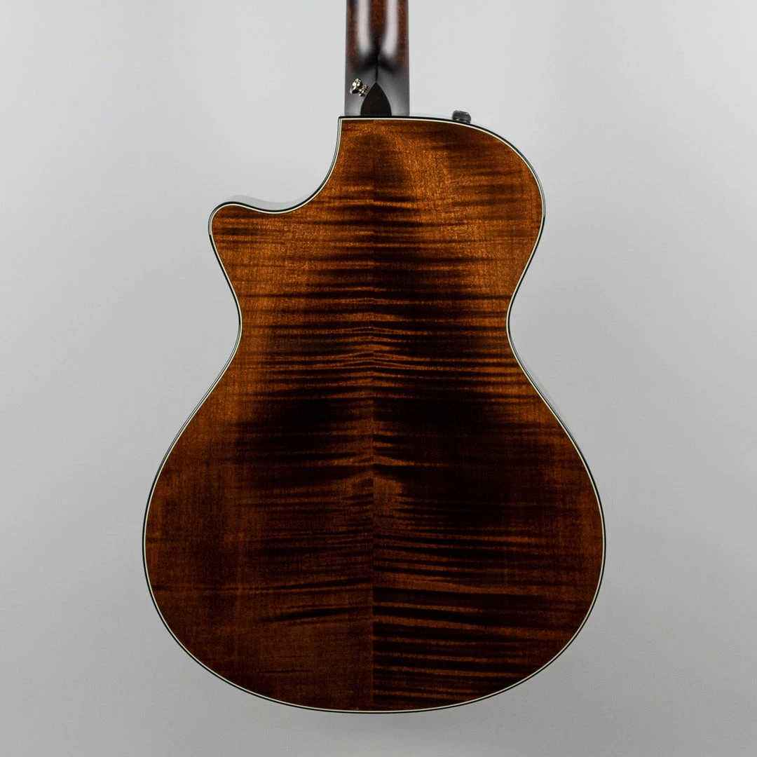 Taylor’s cutaway maple/spruce Grand Concert has been newly enhanced with V-Class bracing, their internal sonic engine that powers this compact guitar to produce louder volume and longer sustain with improved overall tonality.