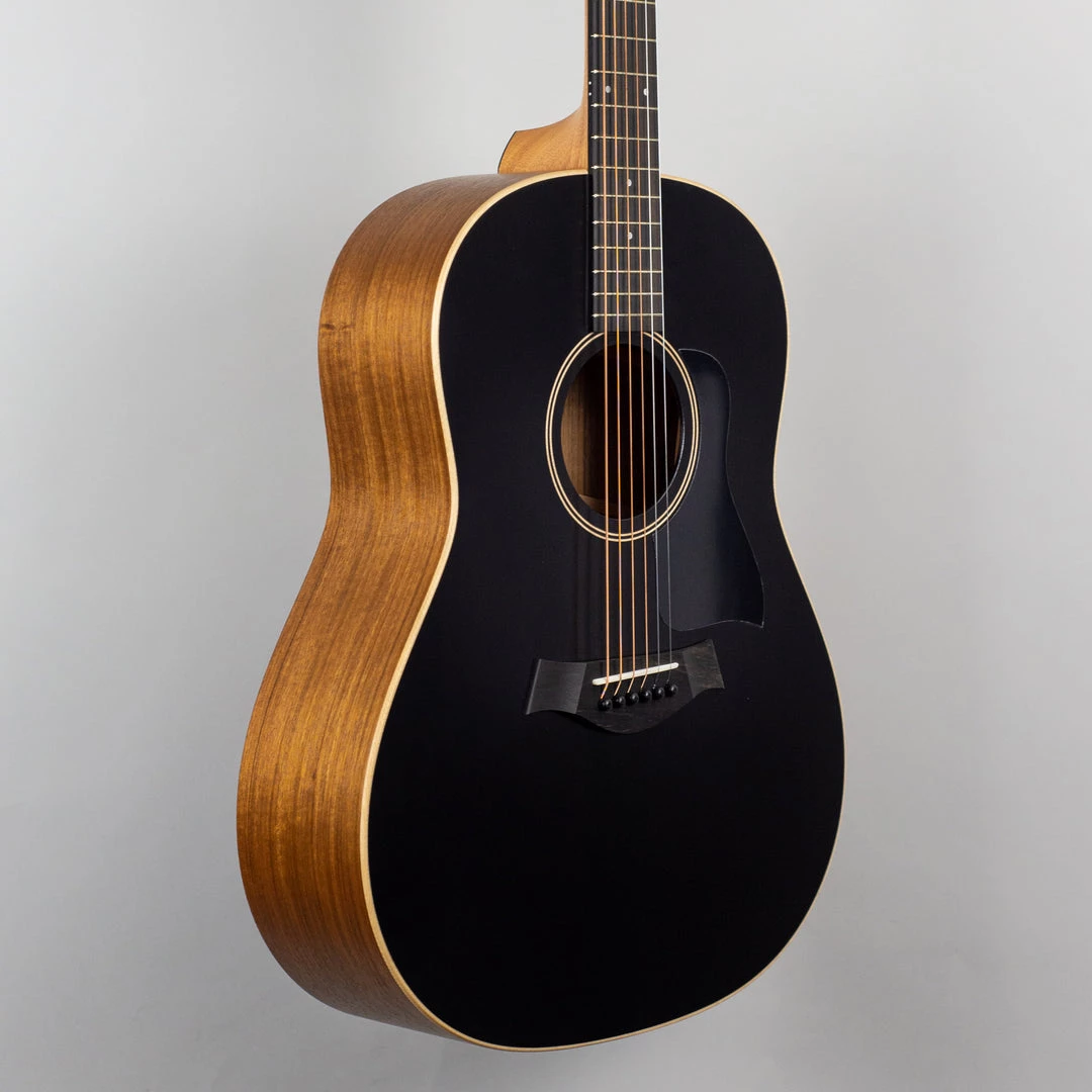 This blacktop American Dream Grand Pacific makes a striking first impression and backs it up with a serious musical punch. Made with solid ovangkol back and sides topped with spruce, this all-solid-wood guitar represents the resilience of Taylor’s commitment to meeting the needs of everyday musicians even in historically difficult times. Ovangkol’s warm, seasoned tone bears hints of rosewood’s lush sparkle, with greater presence in the midrange, while the spruce top adds clarity and articulation. It’s all punched up by the V-Class bracing under the hood, which optimizes the tonal output for greater volume, longer sustain, and ear-pleasing intonation up and down the neck. Aside from the black finish for the top, a thin 2.0-mil matte layer combines a rootsy look with a responsive voice. Additional details include chamfered body edges, a single-ring rosette, 4mm dot fretboard inlays, and a black pickguard. It ships in a sturdy yet lightweight Taylor AeroCase.
