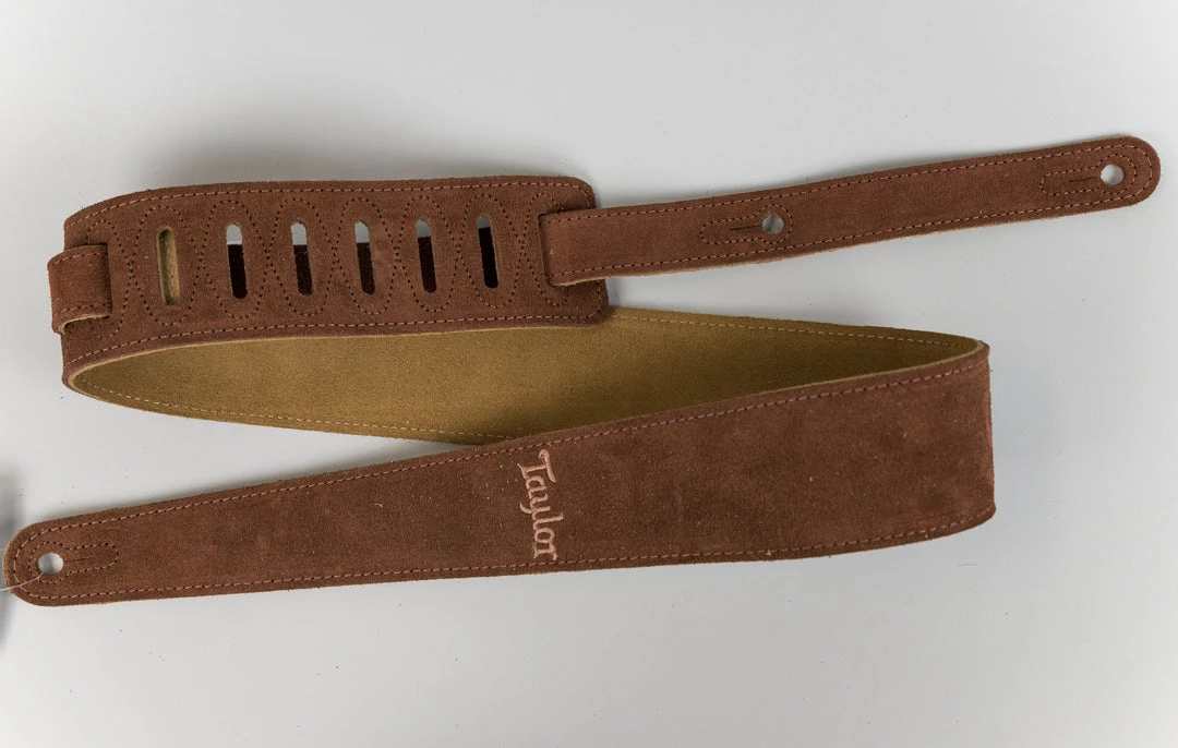 Taylor premium suede guitar strap with embroidered Taylor logo. Made in Canada.