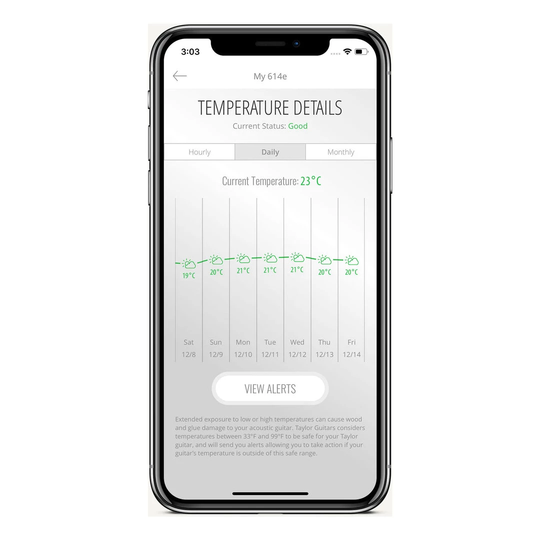 In addition to tracking the guitar’s condition, TaylorSense uses low-energy Bluetooth to send your guitar’s data to the free TaylorSense Mobile App – available for both iOS and Android devices – which sends push notification alerts when the guitar needs care. The timely alerts include links to easy-to-follow videos created by Taylor’s experts that show you how to solve problems when they arise.