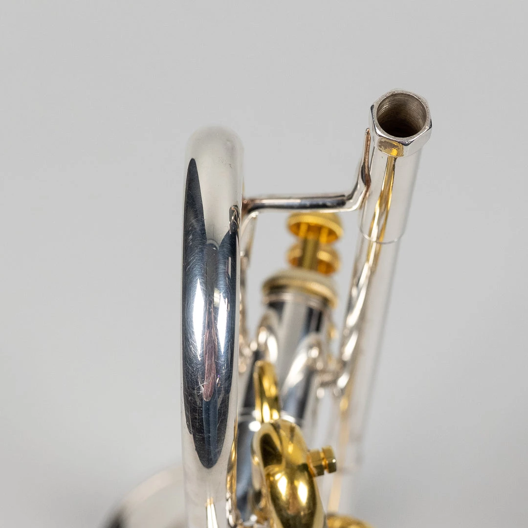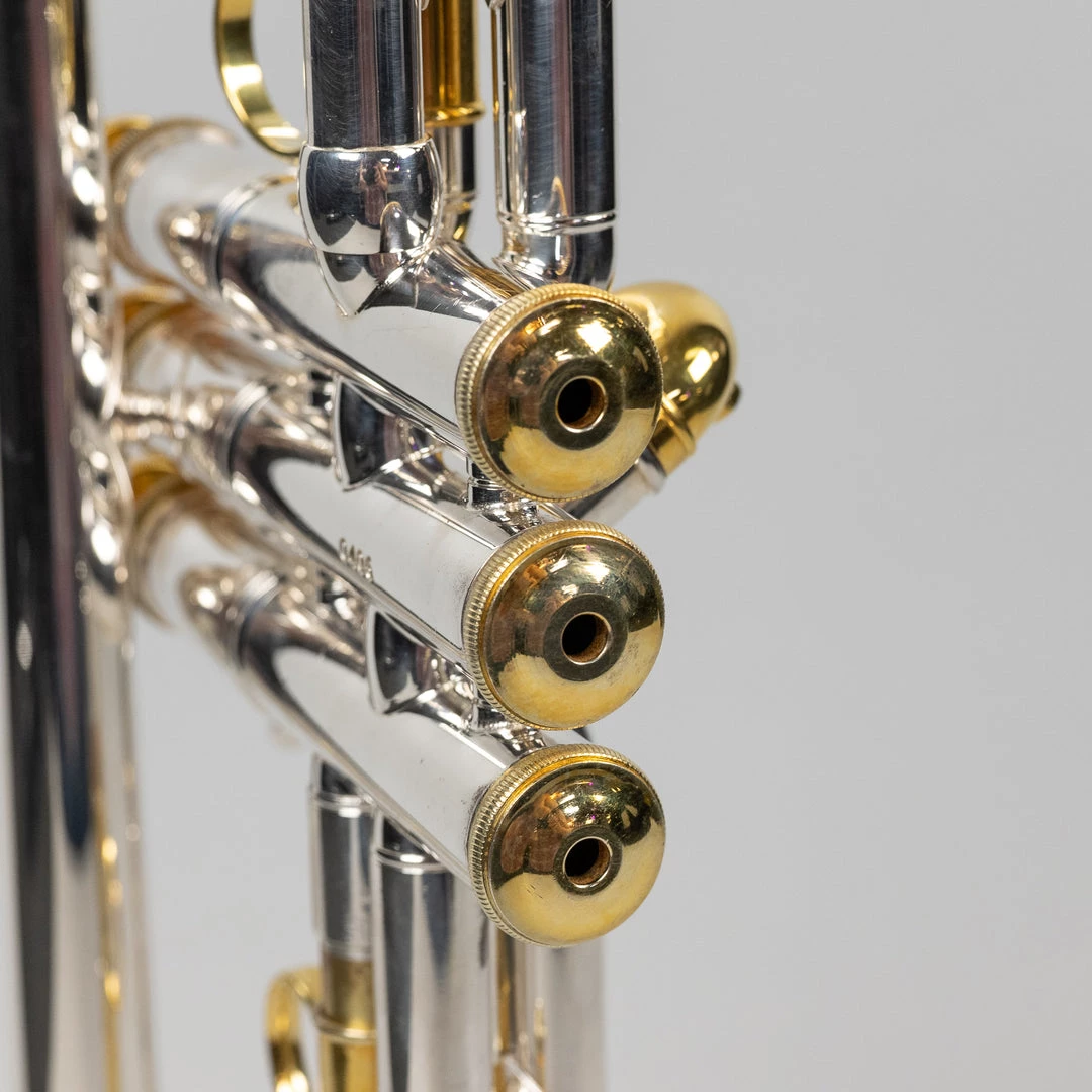 This model is a special-edition reissue of a 1930 Stradivarius. It features a lightweight #7 bell with a classic French-bead flat rim as well as a #7 mouthpipe with ’30s-style receiver. The semiprecious stone finger buttons, silver-plated finish, and gold-plated trim give it an ultra-premium look.