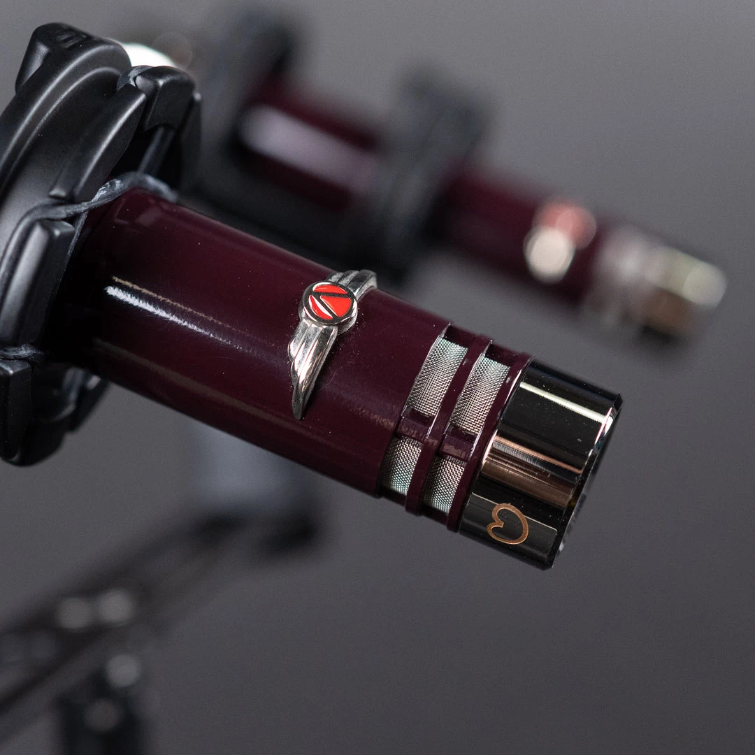 Each precision-machined brass body is coated with Vanguard’s signature Pinot Noir hue, finished with a deep, lustrous gloss, and accented by polished nickel trim and a precision-cast Vanguard badge. The serial number is laser-engraved on the lower rear of the microphone.
