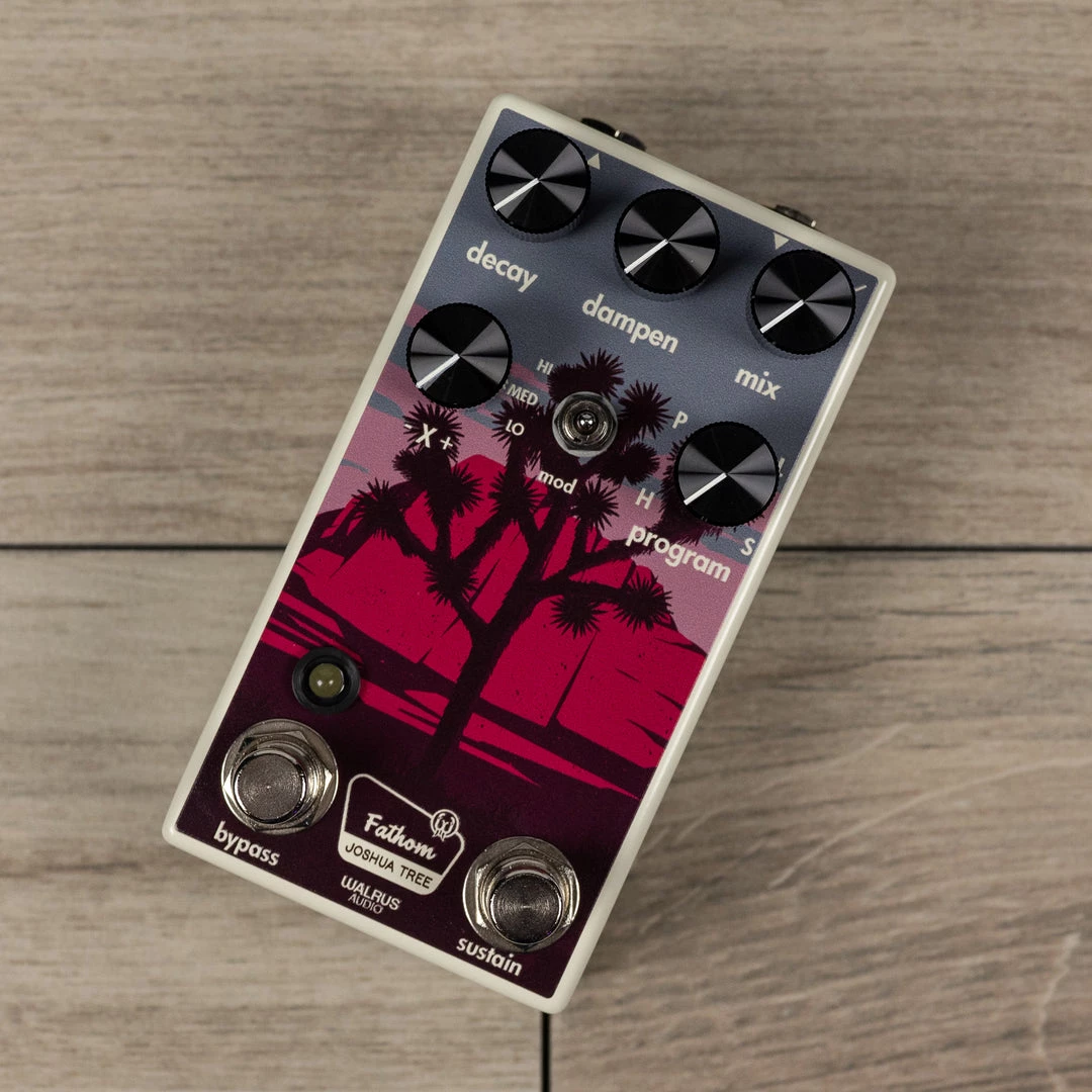 The Fathom is a feature-rich reverb with 4 different customized reverb algorithms to choose from. Easily go from tasteful, small room reverb to long, modulated trails dripping of ambient goodness. The toggle switch adds options for low, medium and high modulation. Use the dampen knob to fine tune the tone of the reverb’s decay.
